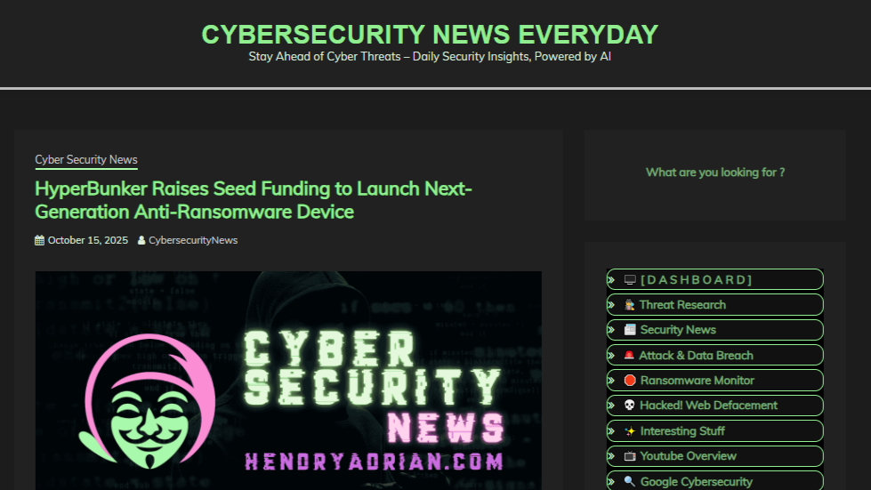 CYBERSECURITY NEWS EVERYDAY CYBERSECURITY NEWS EVERYDAY – 2025 – HyperBunker raises seed funding for next-generation anti-ransomware device. Back to Media