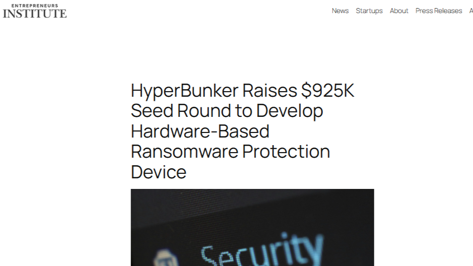 ENTREPRENEURS INSTITUTE ENTREPRENEURS INSTITUTE – 2025 – HyperBunker raises $925K seed round for hardware-based ransomware protection. Back to Media